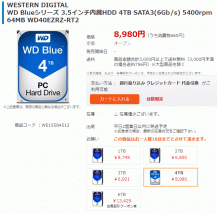 現在Western Digital製の3.5インチ4TB HDD「WD40EZRZ-RT2」はNTT-X Storeにて期間限定特価8,980円、送料無料で販売されています。