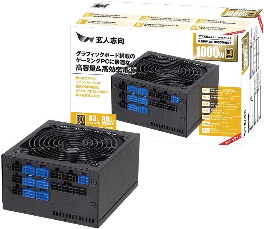- 玄人志向 80Plus GOLD 1000W ATX電源ユニット プラグイン KRPW-GR1000W/90+ – Amazon.co.jp