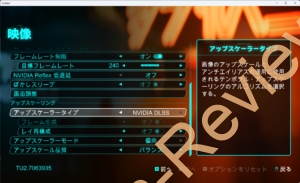 グラフィック設定に「DLSS周りの設定」が無いな…と思ったら「グラフィック」ではなく「映像」という良く分からん項目に「DLSS周りの設定」が有りました。そこ分ける必要性…。