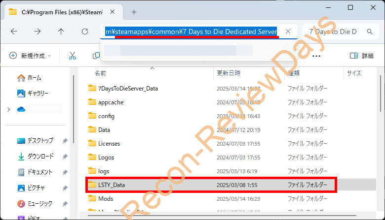管理者用ID、パスワードの変更は「7 Days to Die Dedicated Server/LSTY_Data」に入っている「appsettings.json」ファイルをメモ帳等で編集しましょう。