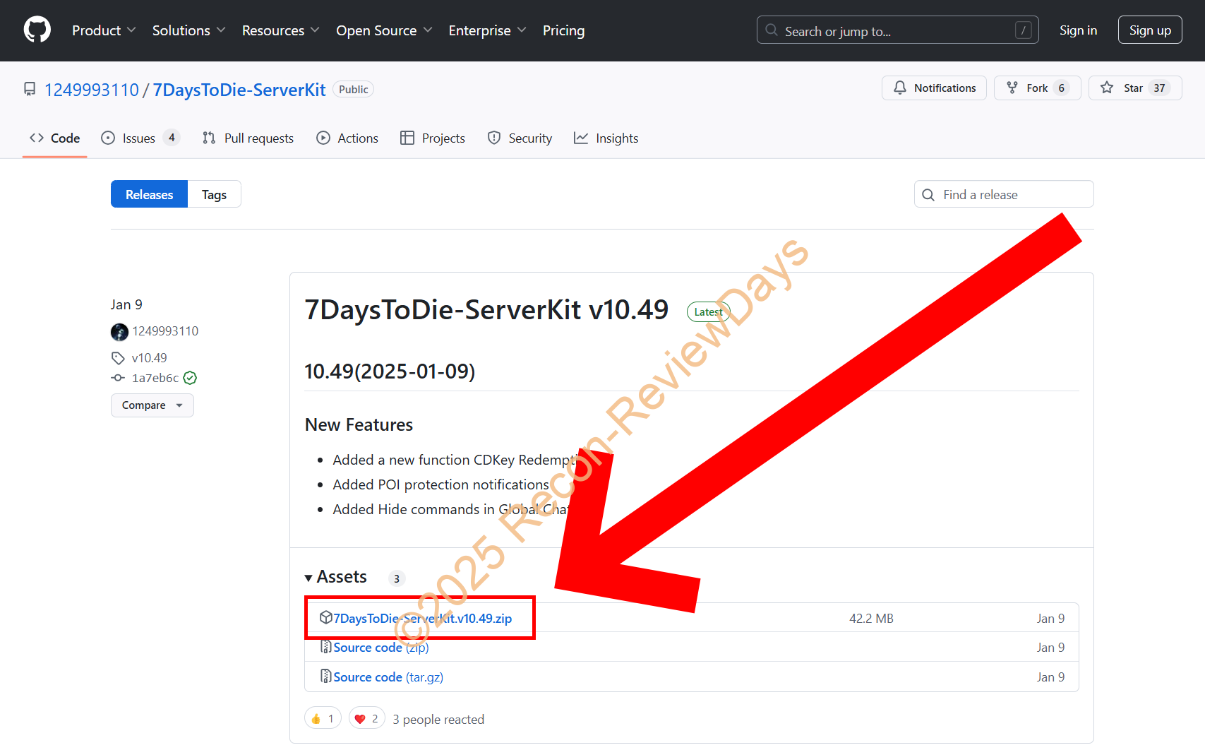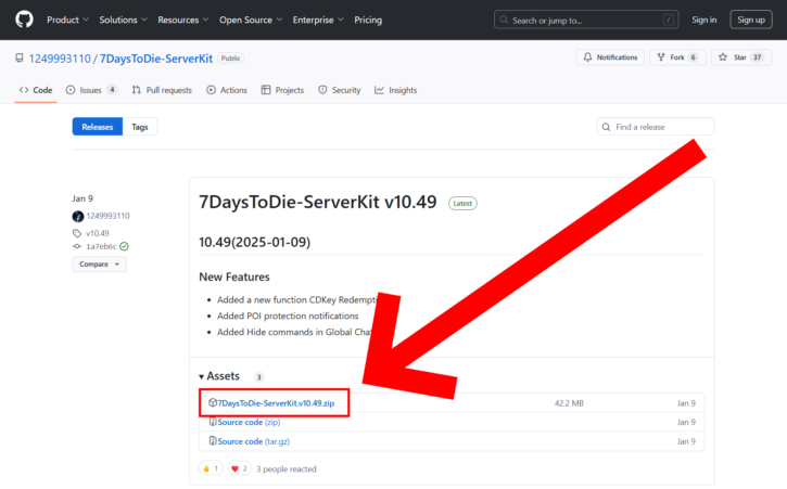 ダウンロード先は「GitHub」より「7daystodie-serverkit.v**.**.zip」から。