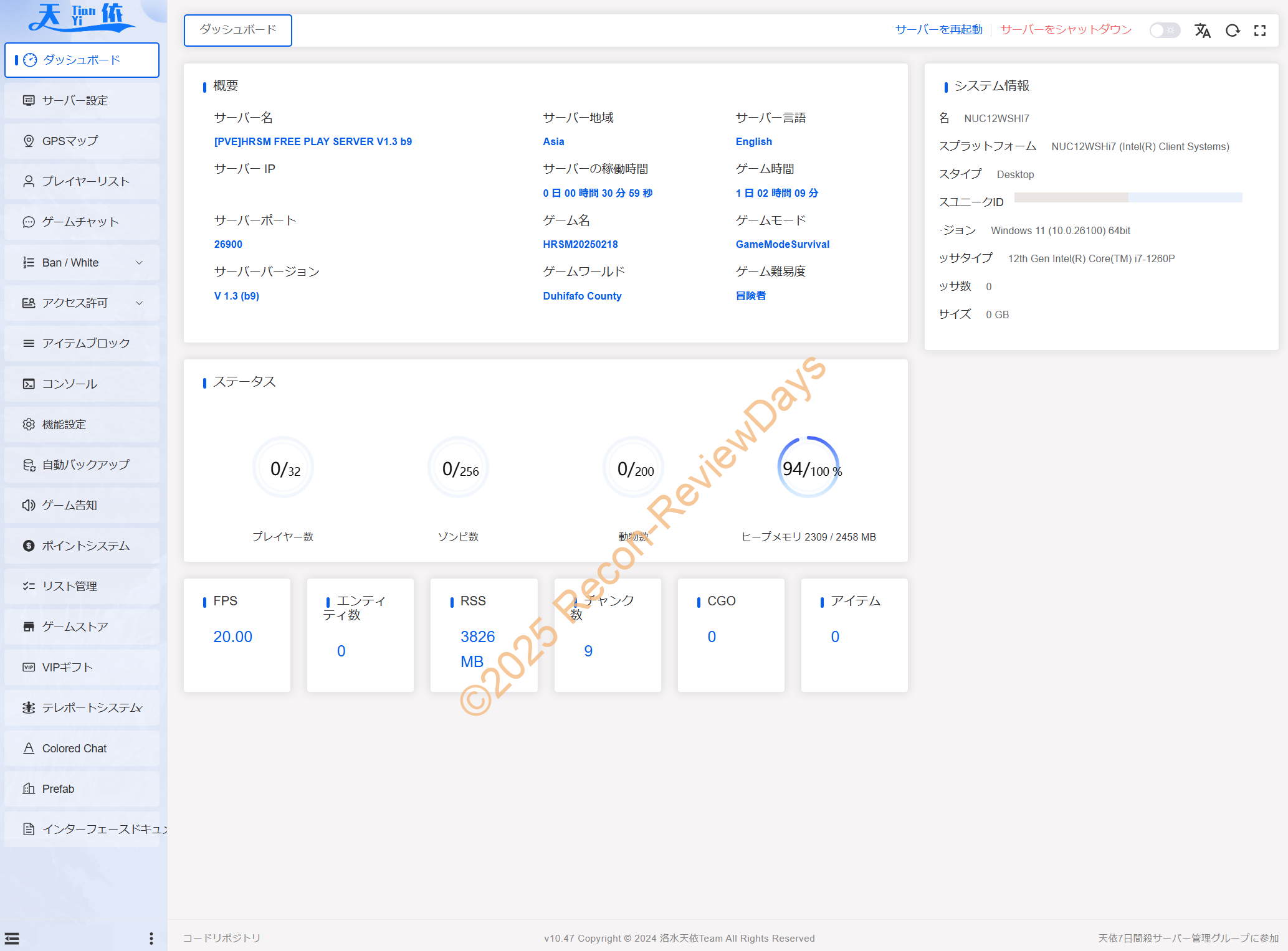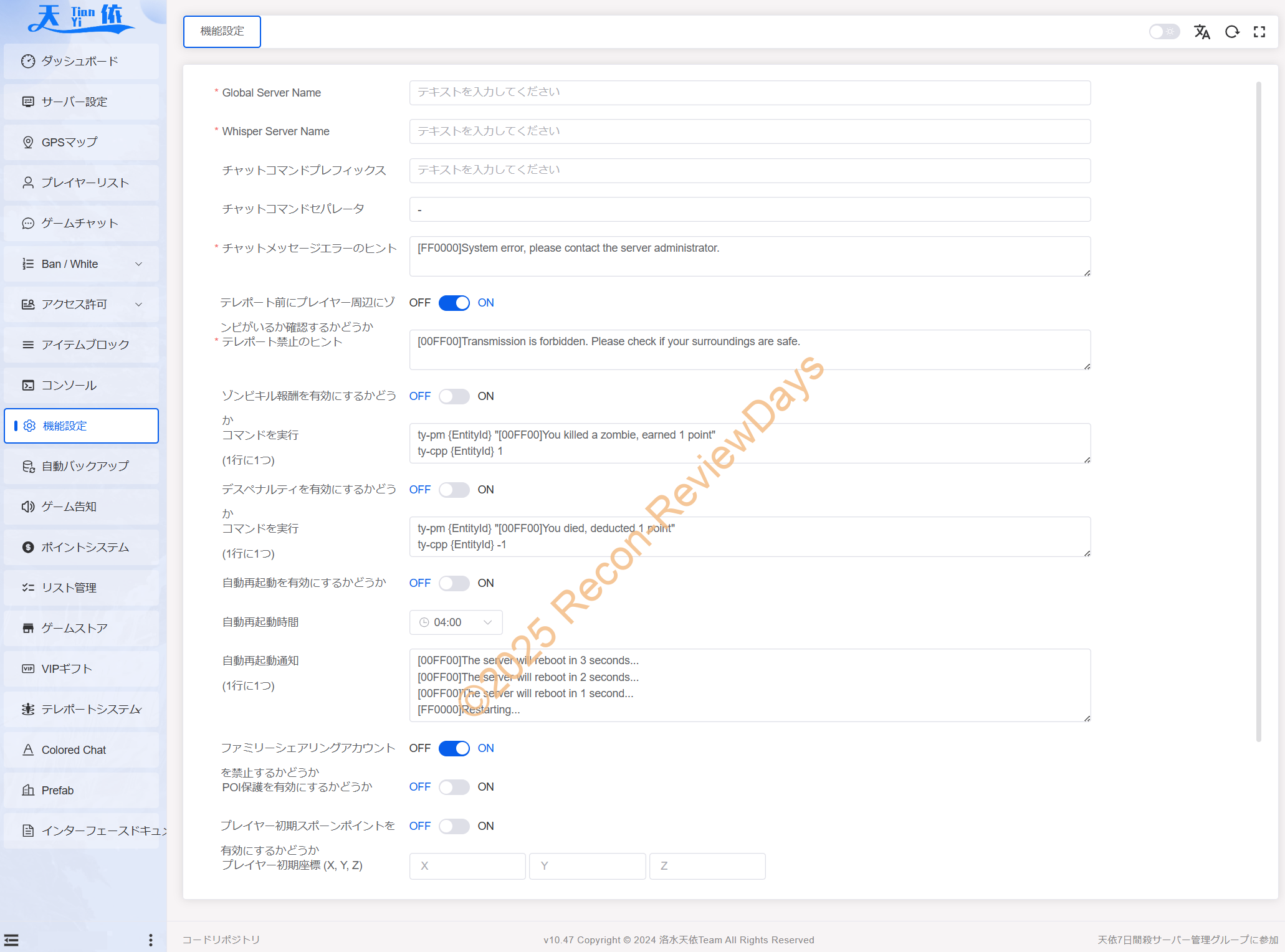 高機能なサーバー管理MODをお探しの場合は「TianYi 7 Days to Die Server Tools」を一度試してみる事をお勧めします。