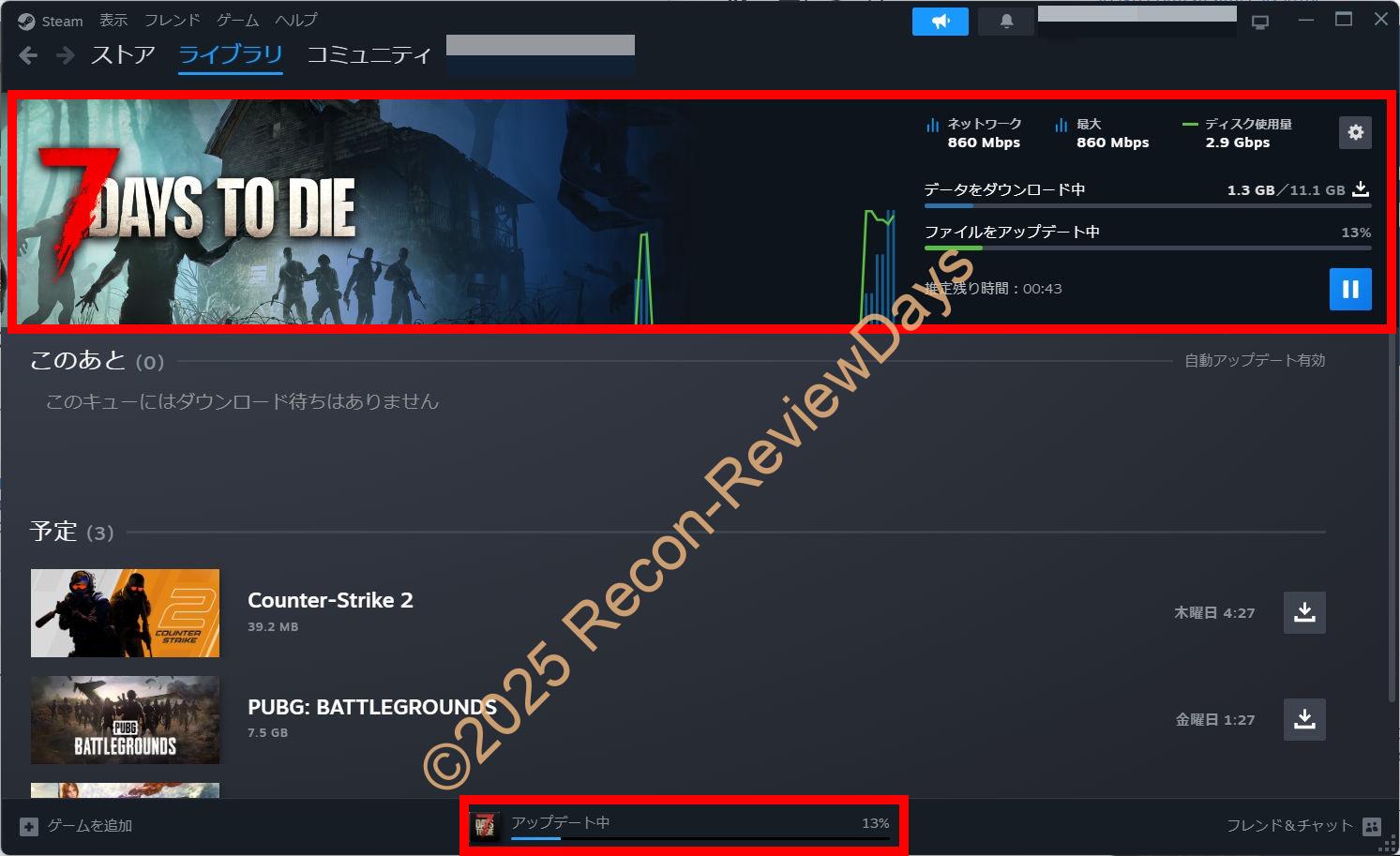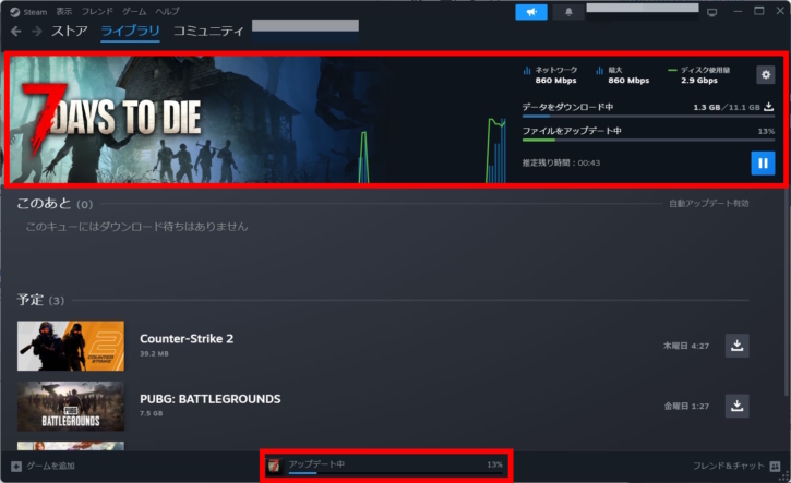 ベータ版の「7 Days to Die」のダウンロードが自動的に始まる