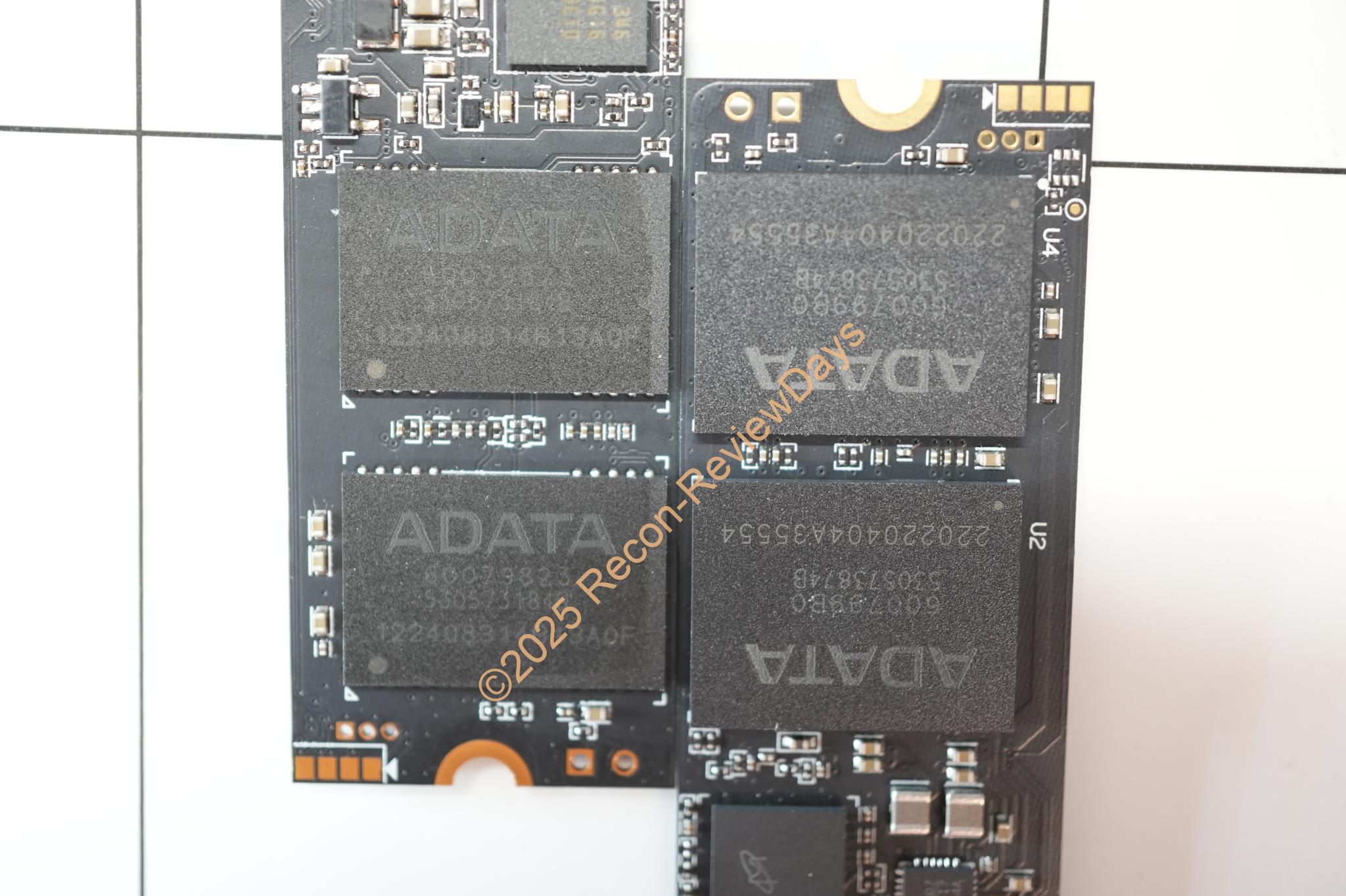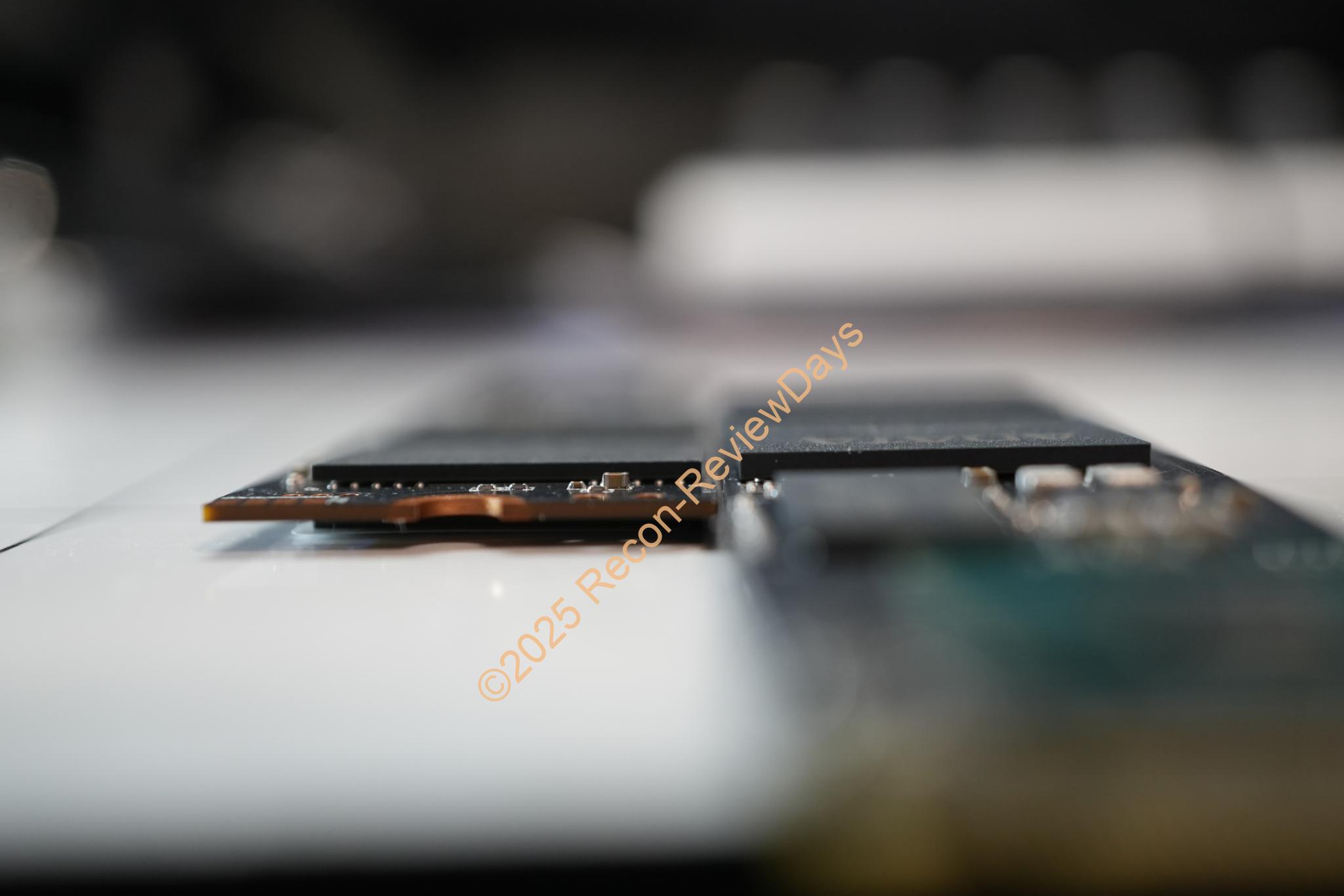 同時に提供して頂いた「1TBモデル」と8TBを比較すると、明らかにNANDのサイズ、分厚さが異なり、8TBモデルの方がより厚くなっている事がわかります。