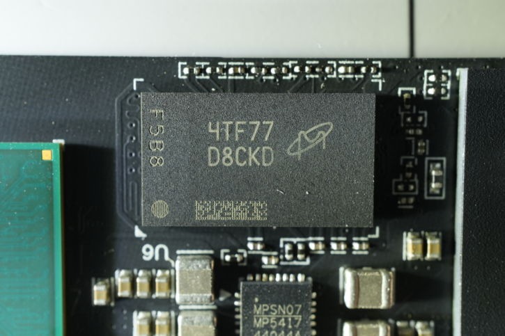キャッシュにはMicron製のDDR4-3200 4GB「MT40A2G16TBB-062E:F」を計2枚 8GB搭載(表面1枚、裏面に1枚)。