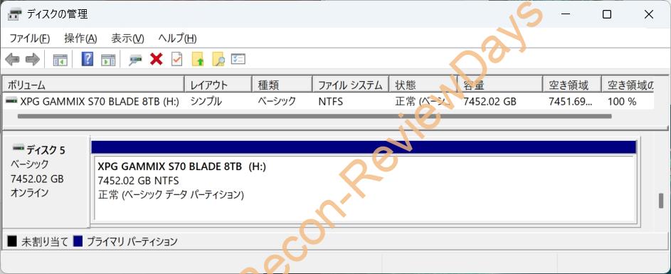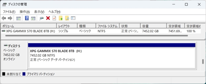 Windows 11で認識させた際には「7452.02GB」と認識されていました。