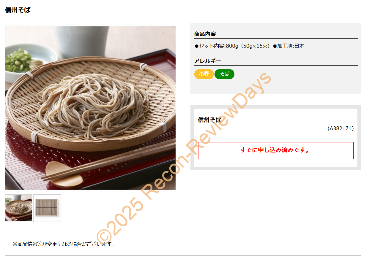 筆者は夏らしい「信州そば800g(50g×16束)」を選びました。