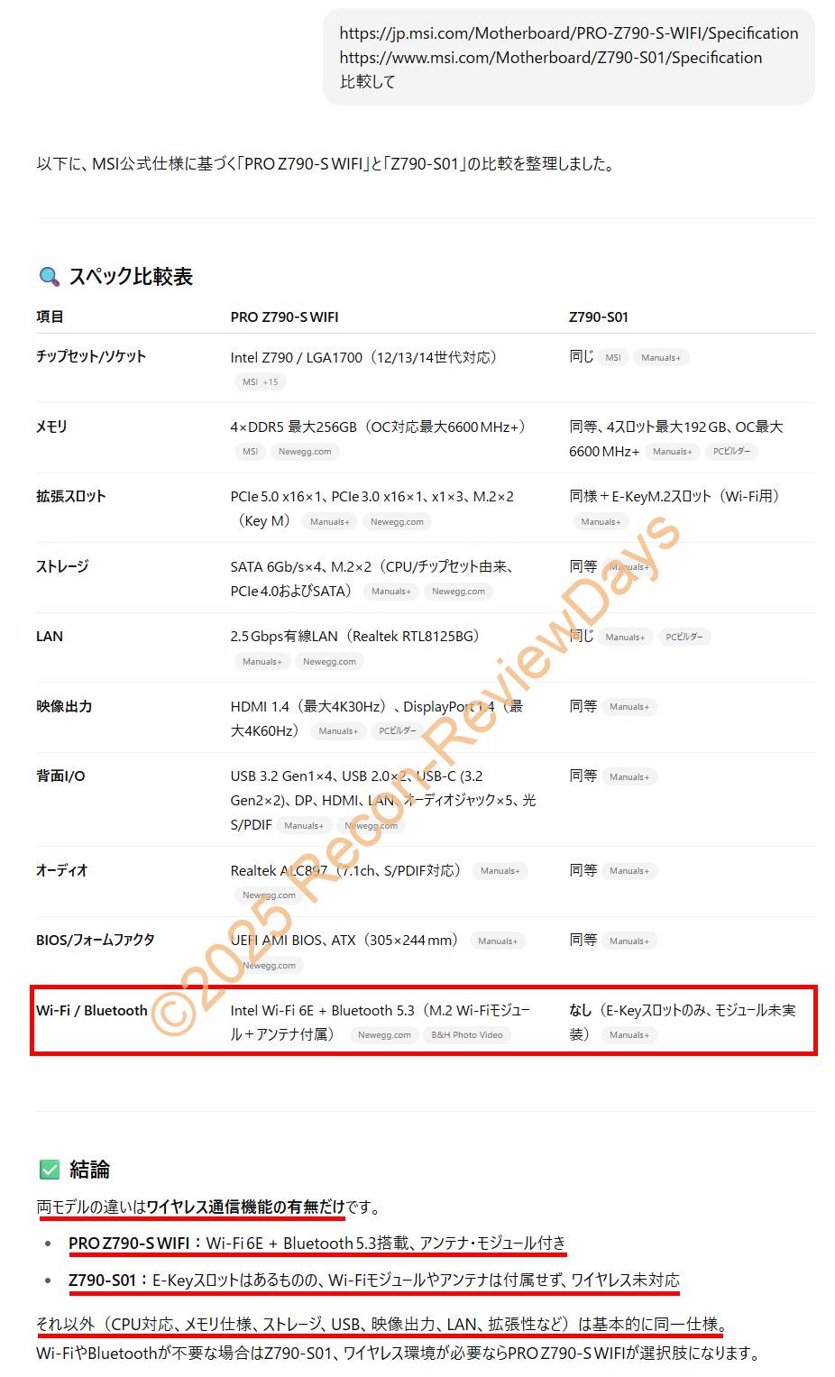 結論としては「Z790-S01」は「PRO Z790-WIFI」をベースとしてWi-Fiカードやアンテナを省く事でコストカット。