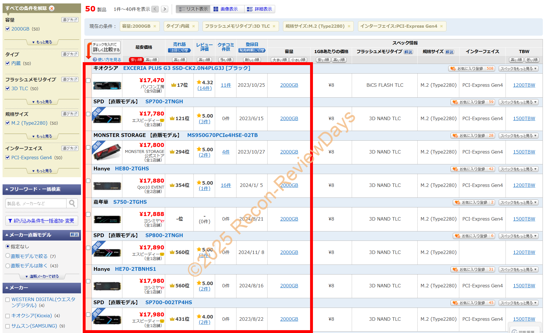 - M.2 2280(PCIe 4.0×4)、2TB 3D TLC 最安価格 – 価格.com