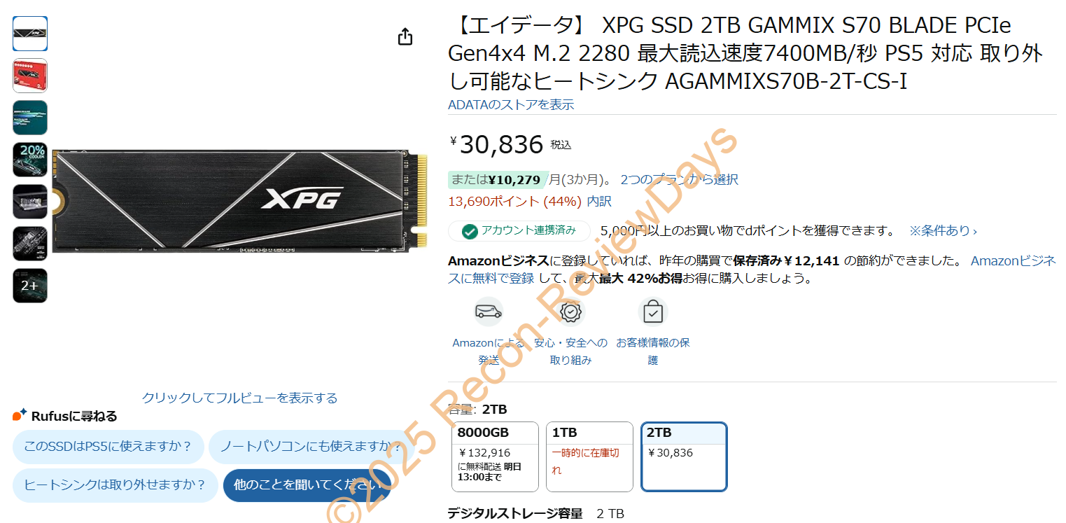 2TB SSDがAmazon 42%ポイント還元で実質17,762円