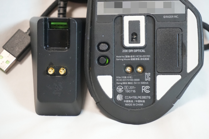 体感速度的にはmicro USBケーブルで直接マウスを充電するスピードより明らかに遅い気がする。(記載スペック上は同じ5V/0.5A充電)