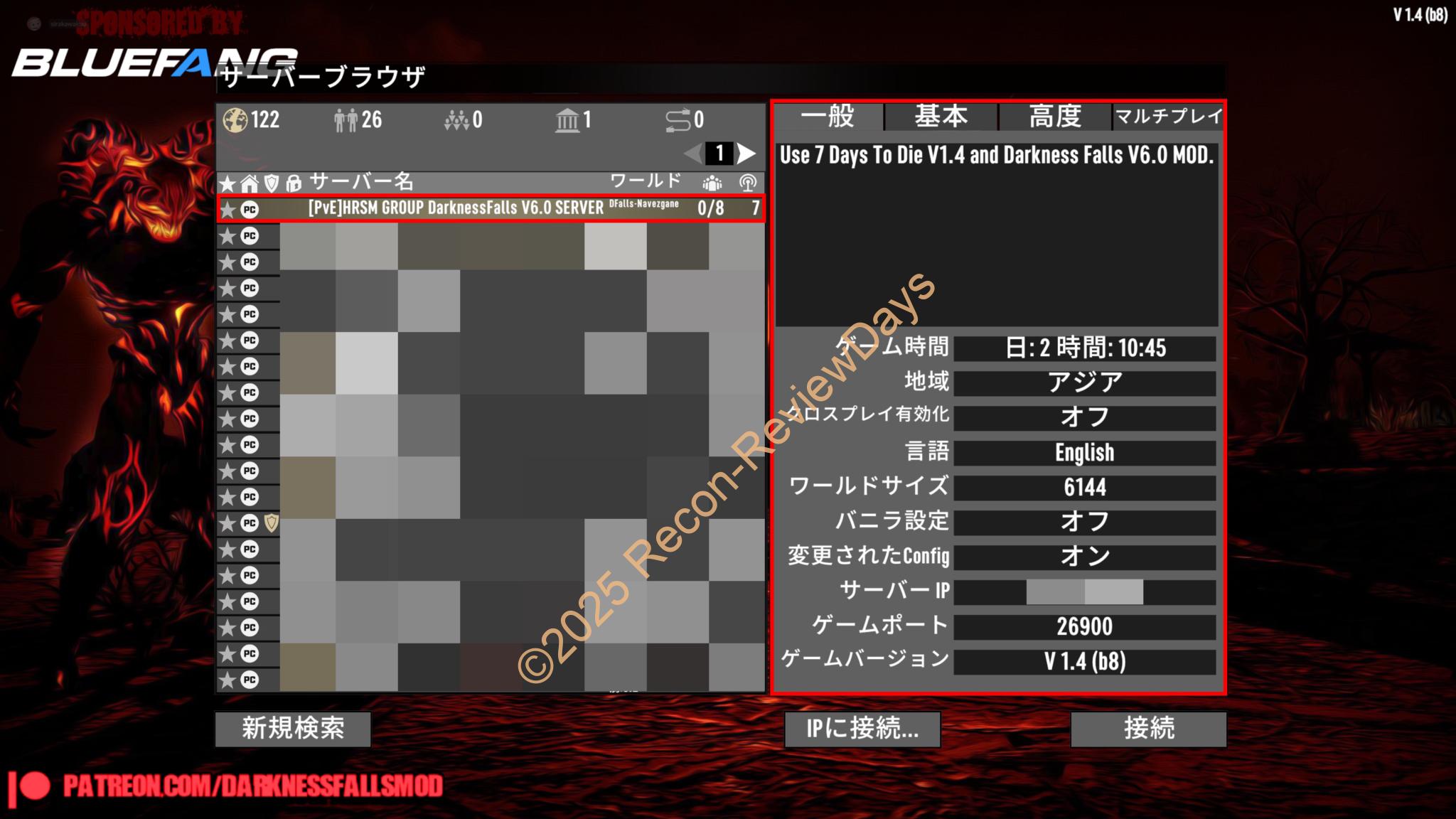 ※「7 Days To Die V1.4 Stable」と「Darkness Falls V6.0」、「日本語化MOD」、「EACオフ」が必須です。