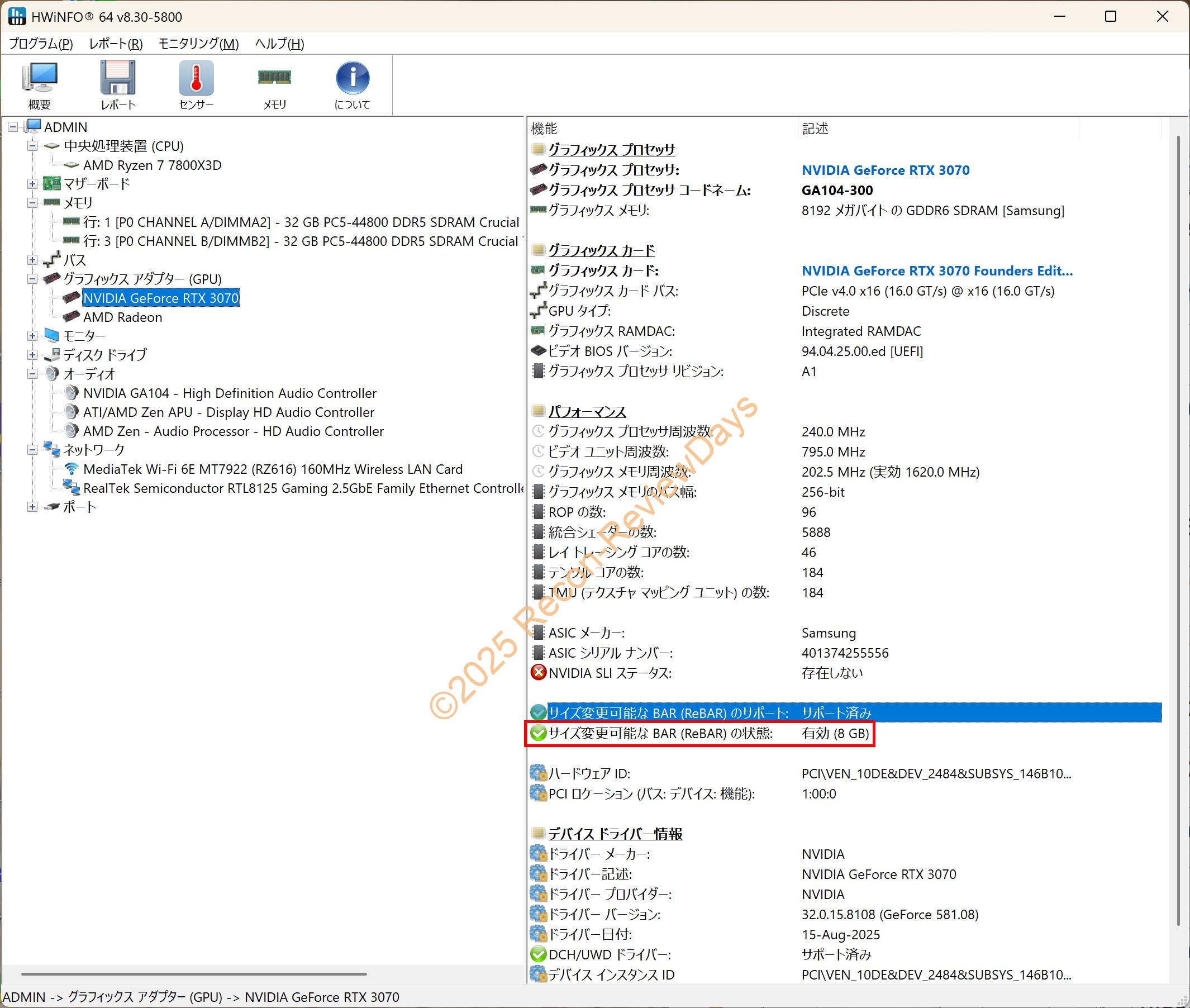 本操作を行う前に「NVIDIA GeForce RTX 3070 Founders Edition」が本当にResizable BARに対応していないのか確認しましょう。