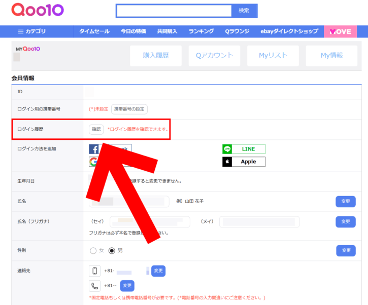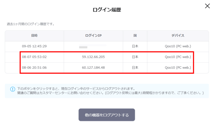 Qoo10でPCから「ログイン履歴」を調べる方法について
