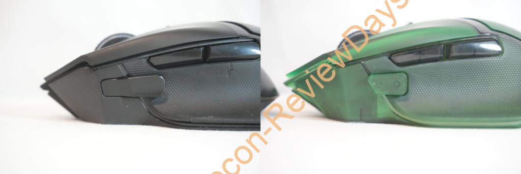 残念ながら「Basilisk Ultimate」で外せていた左側面の「クラッチボタン」は「Basilisk V3 Pro 35K Phantom Green Edition」から取り外せなくなりました。