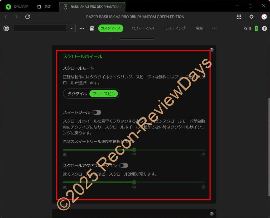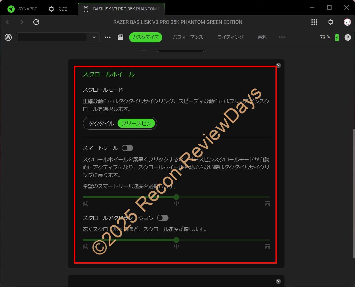 Basilisk V3 Proシリーズに搭載されているスクロールホイールの「スマートリール機能」は個人的に最も要らない機能で、こんな機能ゲーマーが求めているのか?と感じる程。