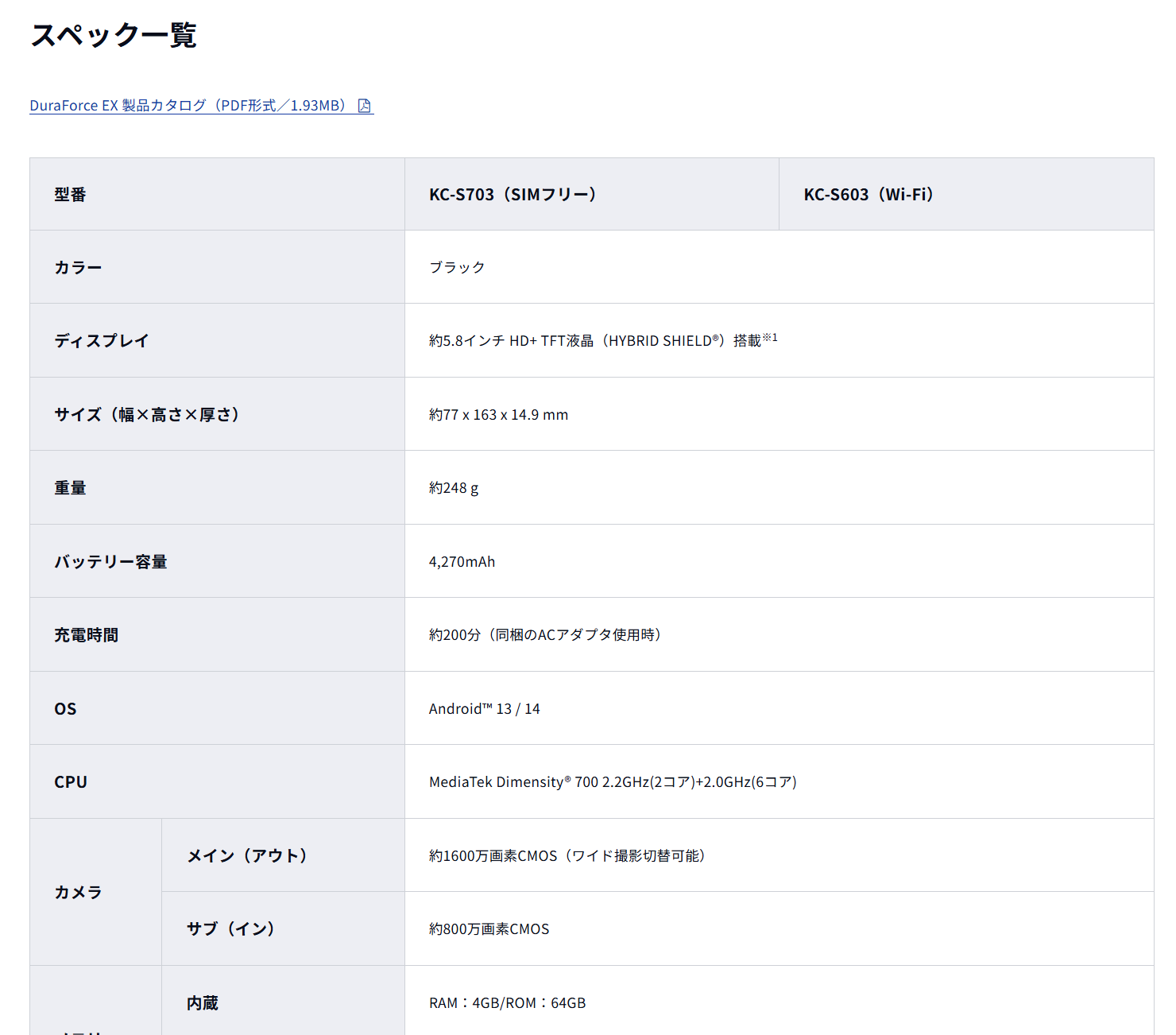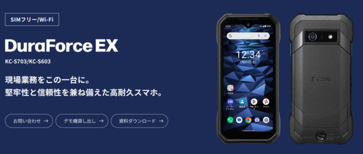 答えは京セラ株式会社が「Webページ」で公開しており、京セラ製の「DuraForce EX(KC-S703、KC-S603)」である事が判明。
