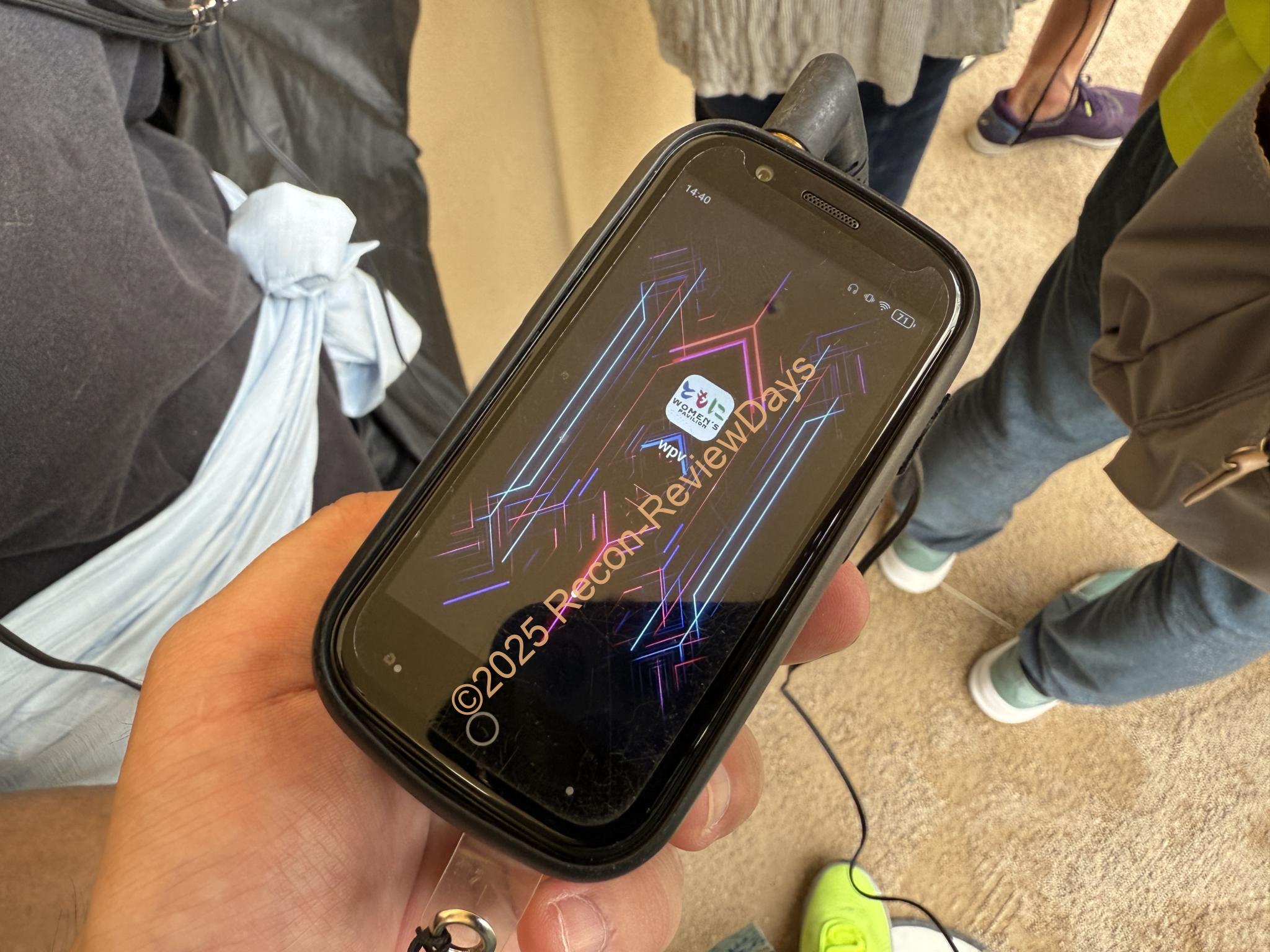 ウーマンズパビリオン内は音声案内がイヤホンを通じて流れるパビリオンとなっており、渡されるスマートフォンは筆者の場合はUnihertz製の「Jelly 2」「Jelly Star」と思われます。