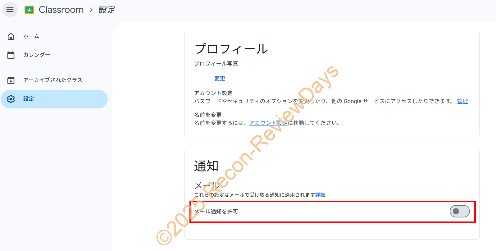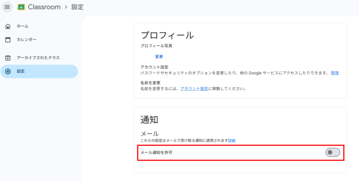 本来であればスパム送信元を報告し、アカウントを凍結まで持って行くのが正しいのですが、「Classroom」の仕様上「参加していないクラスへのスパム招待は報告が難しい」ようで、どうせ「Classroom」を使わないのであれば「招待通知を切った方が早い」という。