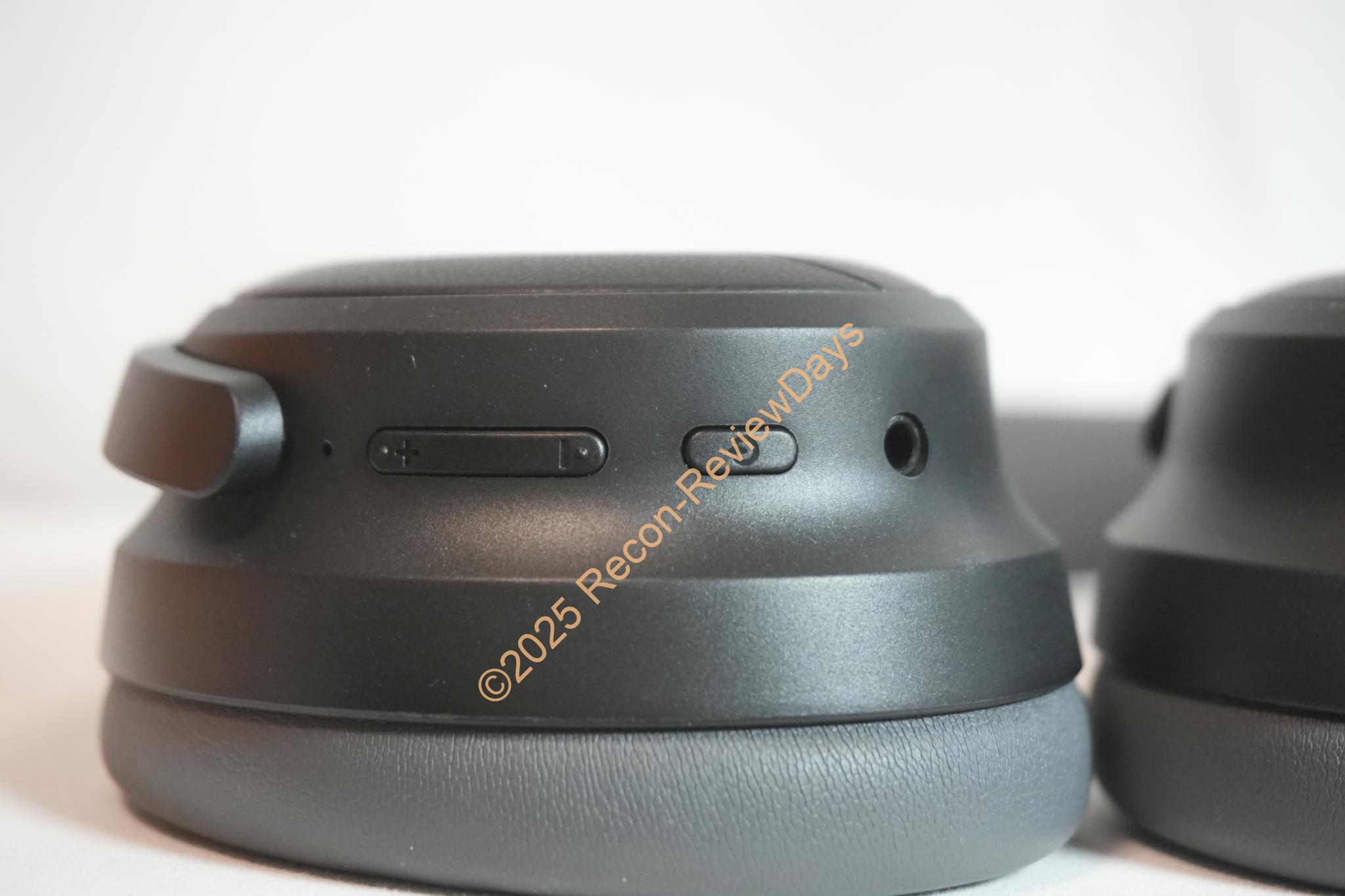ヘッドホン右側: 音量上下、電源ボタン、3.5mm AUX入力