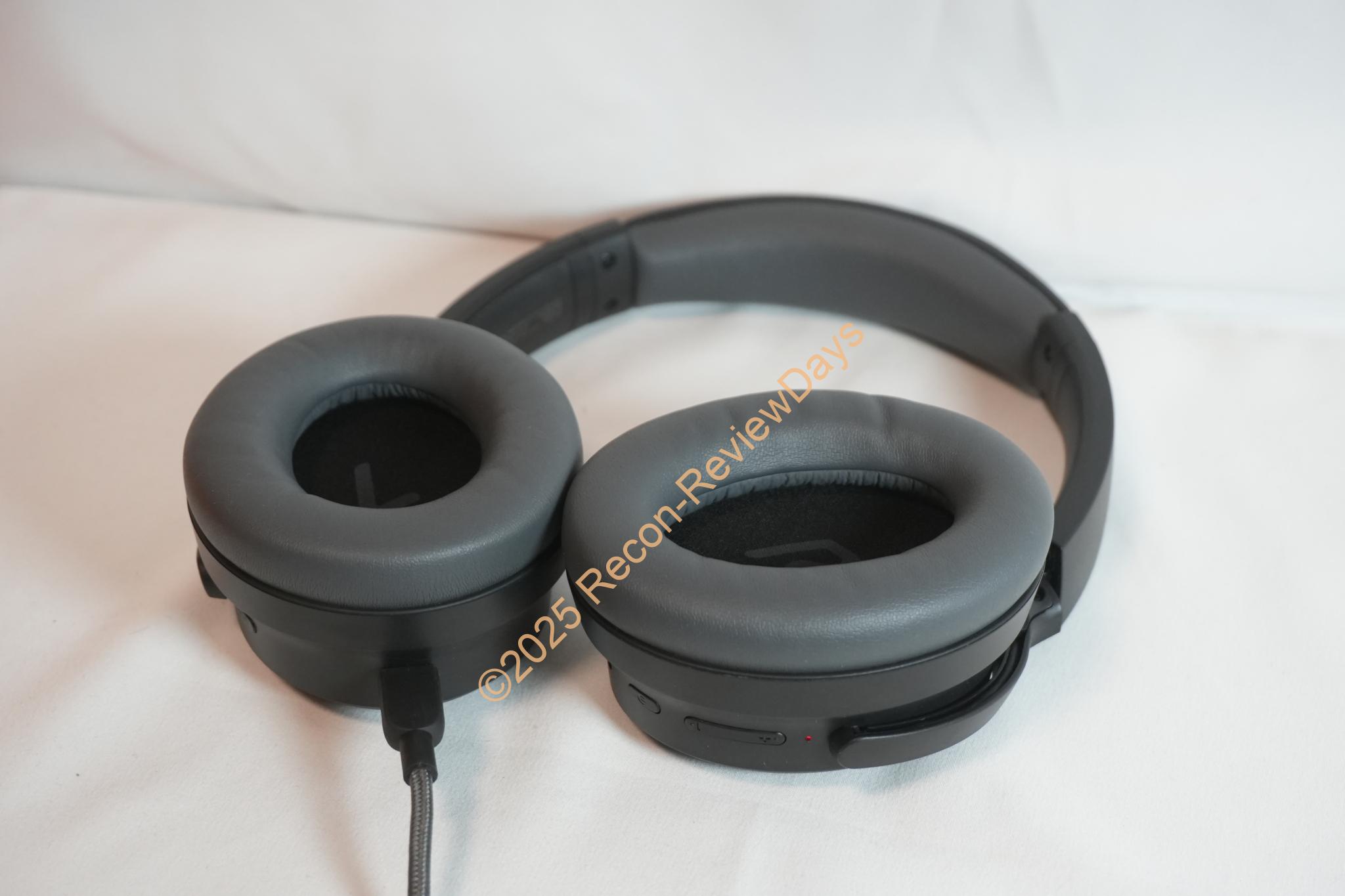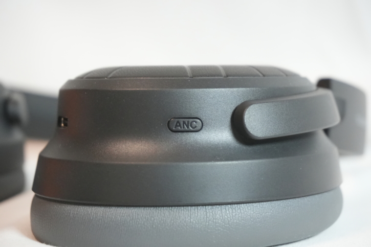 ヘッドホン左側に物理スイッチがあるのでPCやスマホと有線接続(USB Type-C、3.5mm AUX入力)をしている状態でもノイズキャンセリングのON/OFFが可能です。