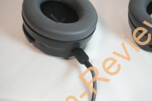 「USB Type-C端子(5V/1A)」は左側のヘッドホンにあり、充電インジケーター(赤色)は右側に搭載。