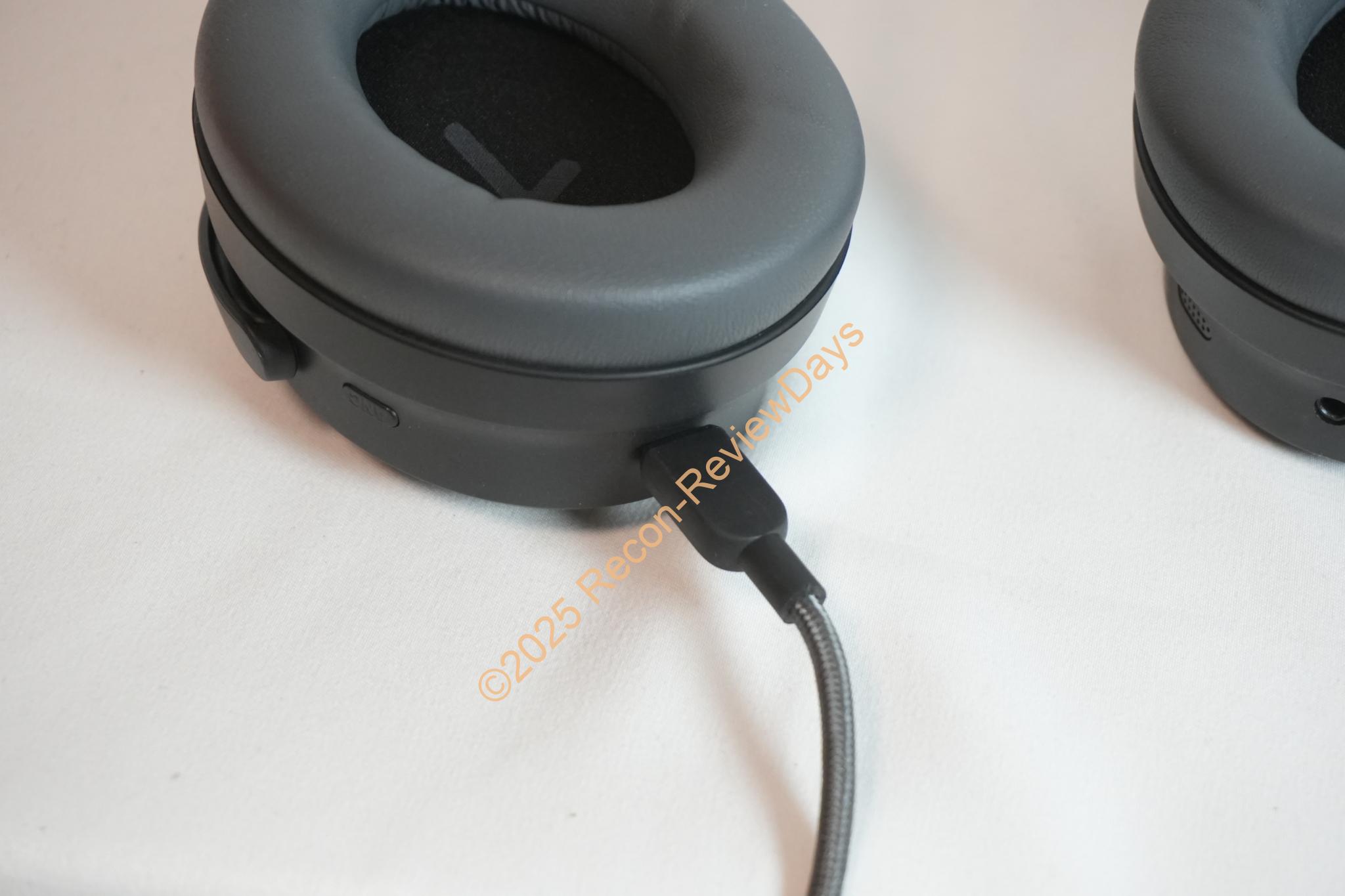 無線は「Bluetooth v5.4」、有線接続は「3.5mm AUX入力、USB Type-C接続」の3方式に対応したノイズキャンセリング対応のヘッドホンとなっており、充電端子はUSB Type-C(5V/1A充電)。