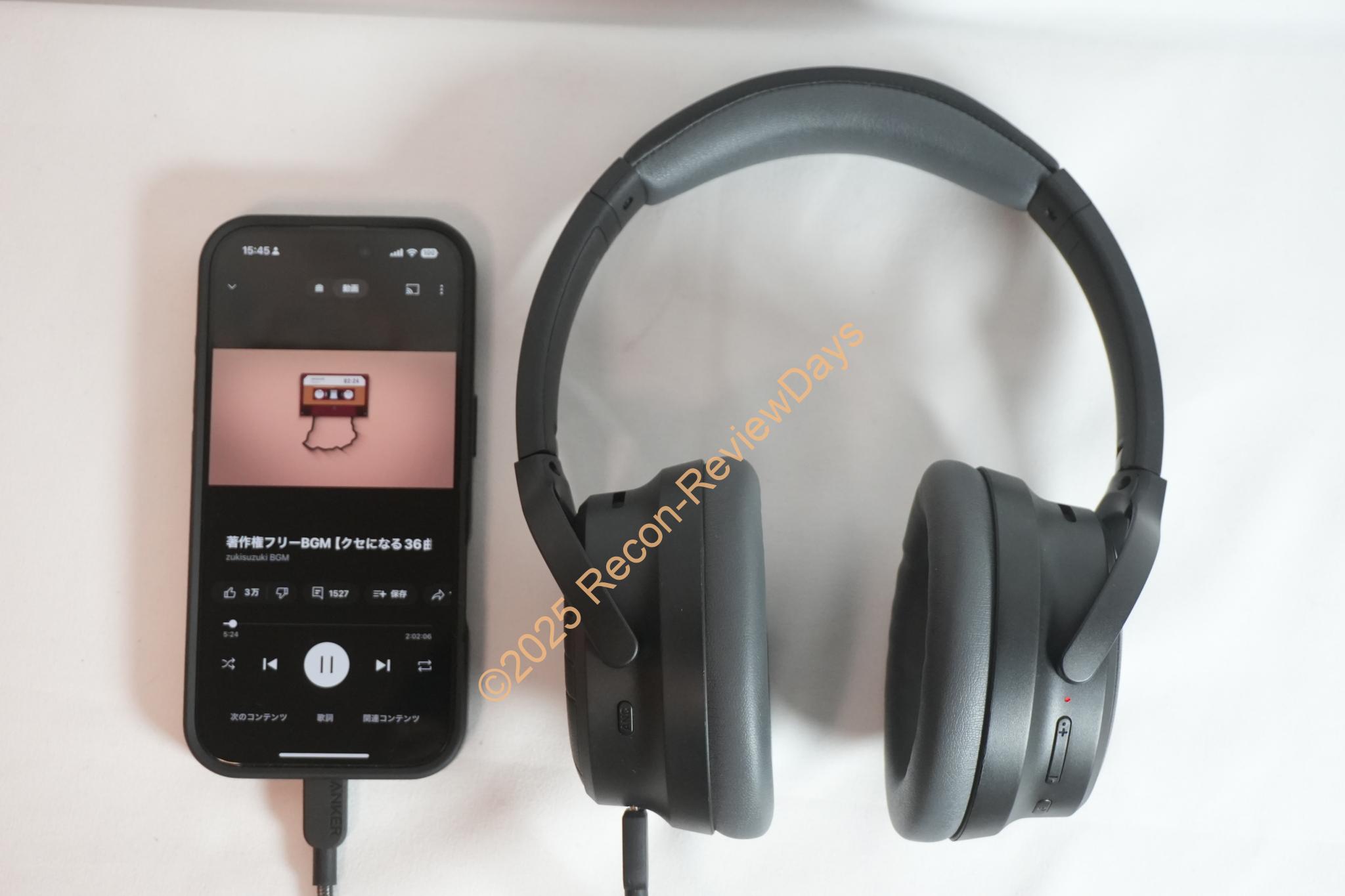 因みにPCやiPhone 16 Pro、Galaxy S25とUSB Type-C to Cケーブルを用いてヘッドホンを接続しましたが、問題なくUSBオーディオとして音楽の再生、マイクの入力が可能でした。