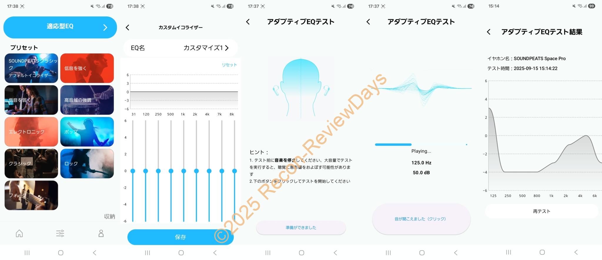 特に「適応型EQ(アダプティブEQ)」は珍しく、ユーザーが聞こえる「周波数(Hz)、音量(dB)」に応じてイコライザを自動調整する機能が備わっており、単なるEQではなく、ユーザーに応じた調整を自動的に行ってくれる機能も搭載。