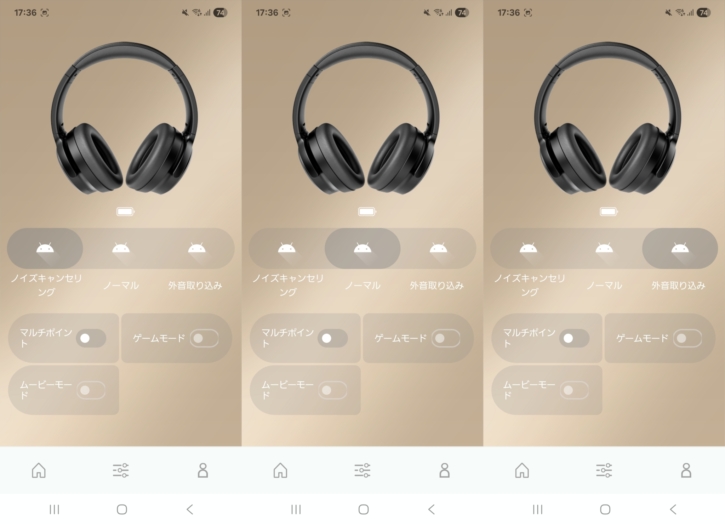 ノイズキャンセリング(ANC)のON/OFFでヘッドホンの音が大幅に変わってしまうので、ANCモードの切り替えはかなりの違和感があります。