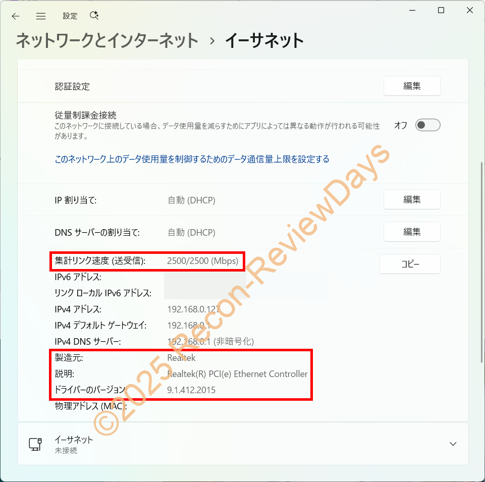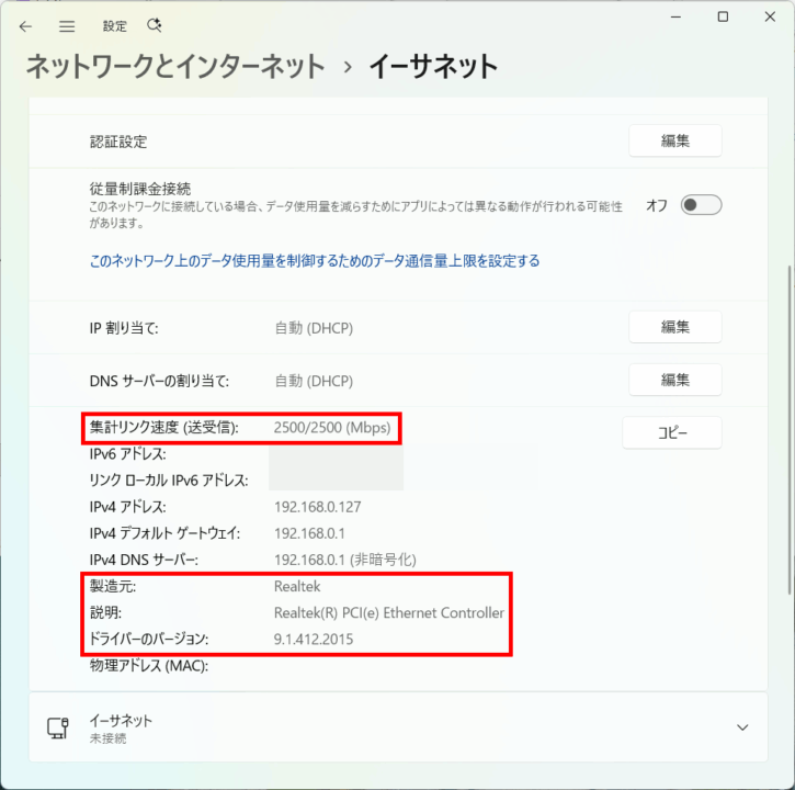 Win11 24H2の標準ドライバーでも動作するが「2.5GbE接続」に制限