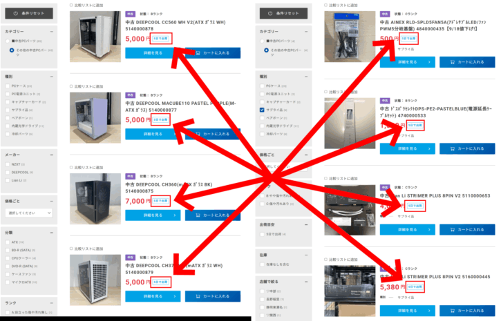 ドスパラの中古Web通販の納期は「24時間以内出荷」、「5日で出荷」と遅い商品がある