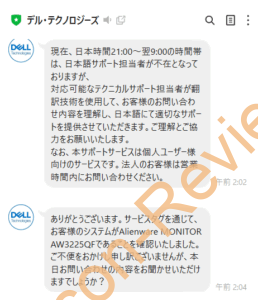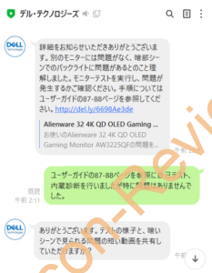 DELL製のディスプレイの修理依頼(RMA)はLINE経由でも送信する事が可能で、「営業時間外(平日 9:00~18:30)」でも海外のサポート担当の方が翻訳ツールを使って対応して頂けました。
