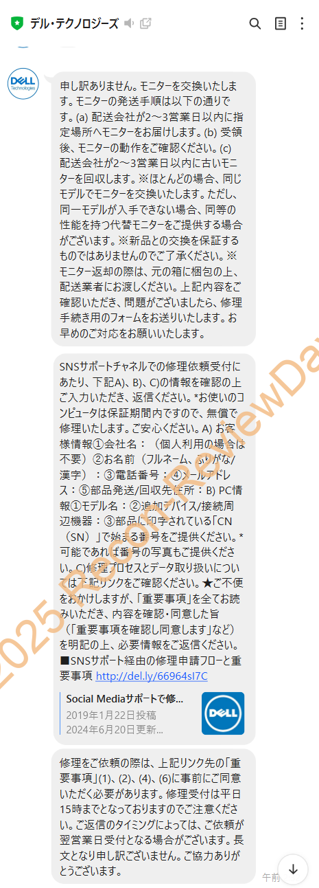 DELLのディスプレイのRMA依頼はLINEから送れる