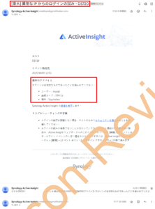 「Active Insight」経由で攻撃通知のメールが多数届く