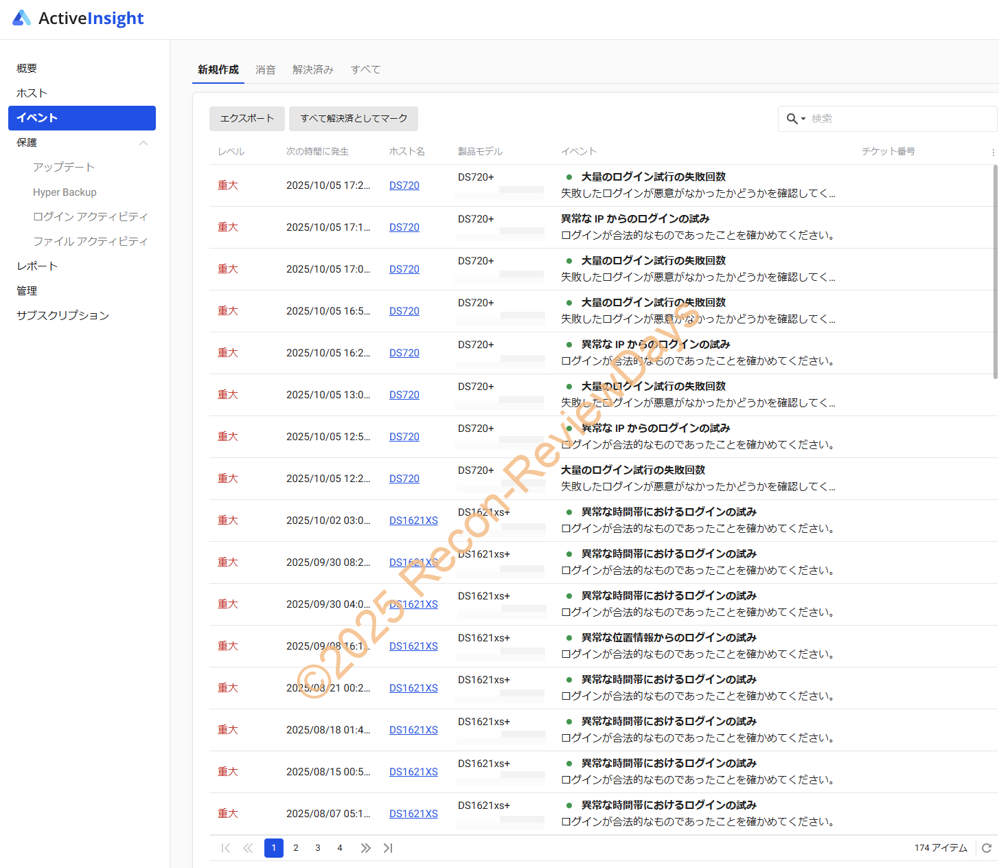 因みに当Synology製NASに対する攻撃類を「Active Insight」で確認できますが、酷いもんです。