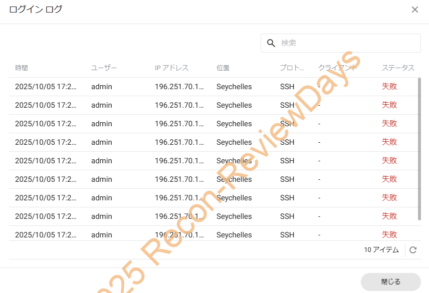 このまま攻撃が何度も行われると、2段階認証を設定していなければ突破される危険性があり、NASのリソースを無駄に使って電気代の無駄になる事も考えられるので、早急に対策を行う必要があります。