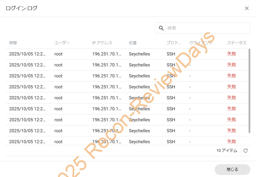 東アフリカの「セーシェル(Seychelles)」という国のIP「196.251.70.115」から「SSH」、ユーザーIDの「admin、root、mysql、postgres、jira」等を使って侵入しようとした形跡がかなりの数ありました。
