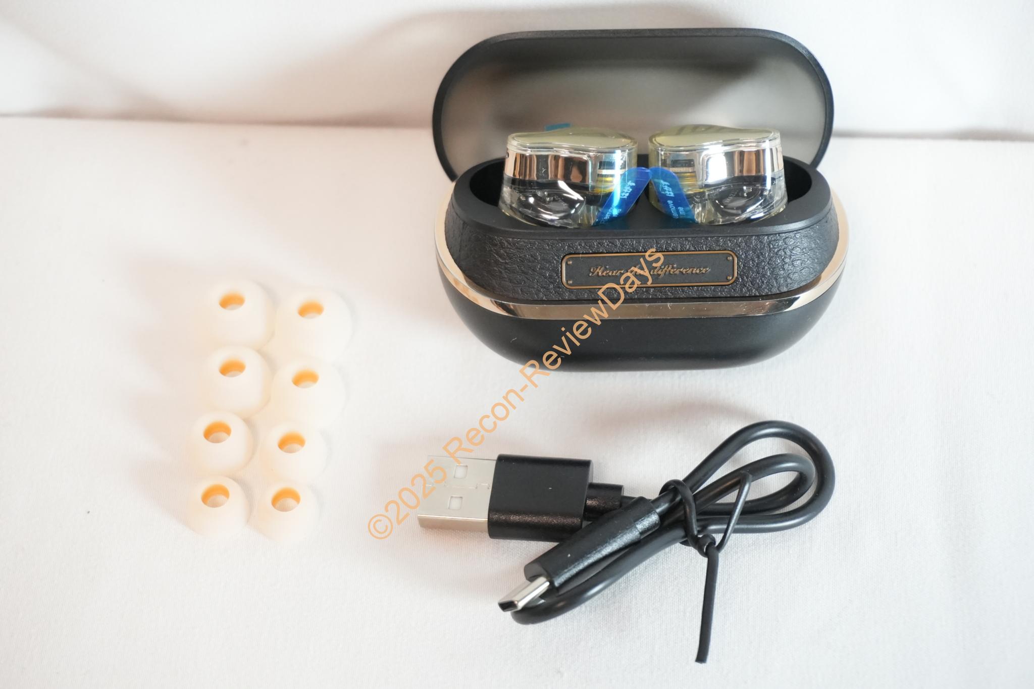 イヤーチップ計5種類(XS/S/M/L/XL、※1種類はイヤホンに取付済)付属しており、他社メーカー品(S/M/Lの3種)に比べると2種類多く付属しています。