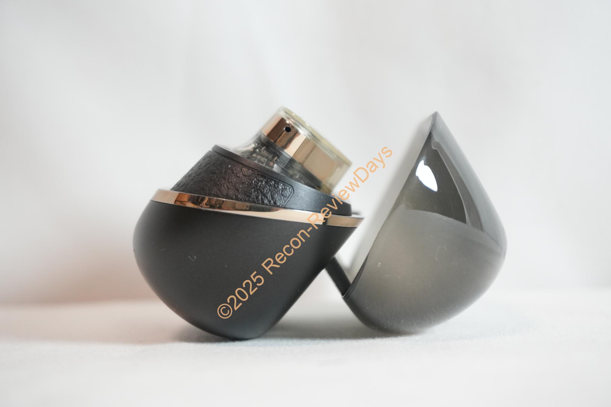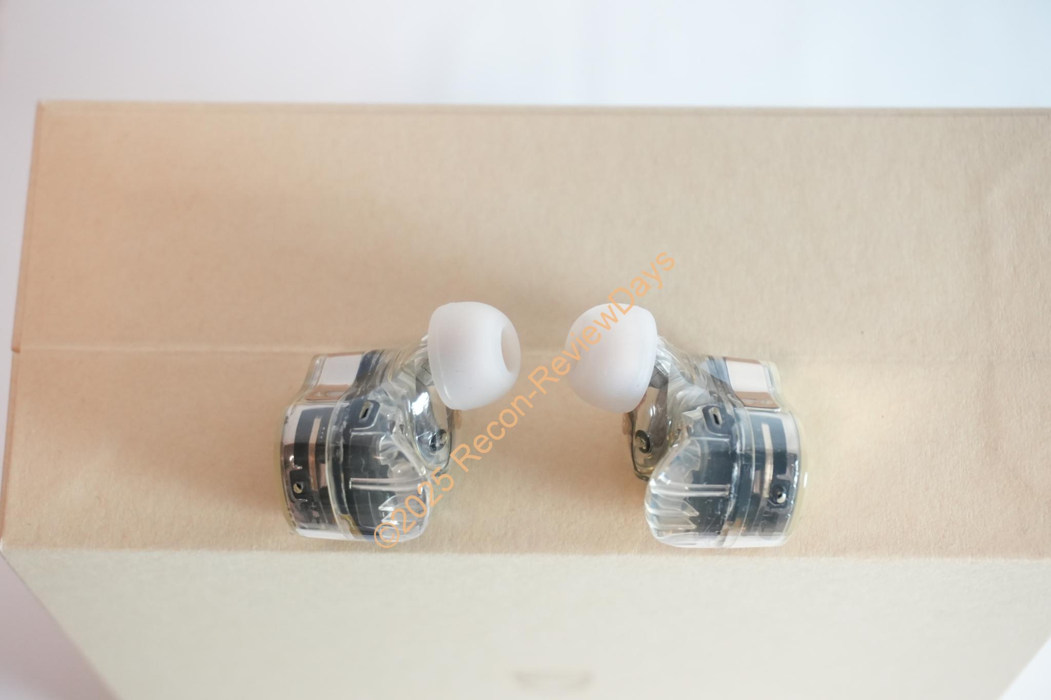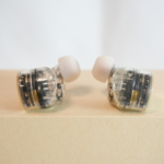 完全ワイヤレスイヤホンの中では非常に珍しく「12mmダイナミックドライバ(DD)+2基バランスドアーマチュア(BA)ドライバ ハイブリッド」となっており、かなり分厚い見た目をしています。