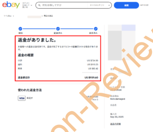 返送開始から「約12日」で返金となっており、返品した商品をeBay側が受け取ってからかなりの時間(10月31日~11月8日、計9日)掛かってしまっており予想外。