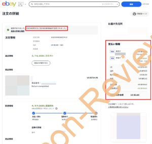 ※商品ページに「購入者が返送料を負担します。If you use an eBay shipping label, it will be deducted from your refund amount」と記載がありました。
