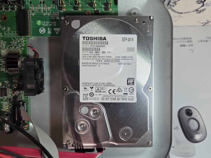 一応「監視カメラ向けの製品」で「CMR/5700RPM/32MBキャッシュ」でした。交換は可能なように見える。