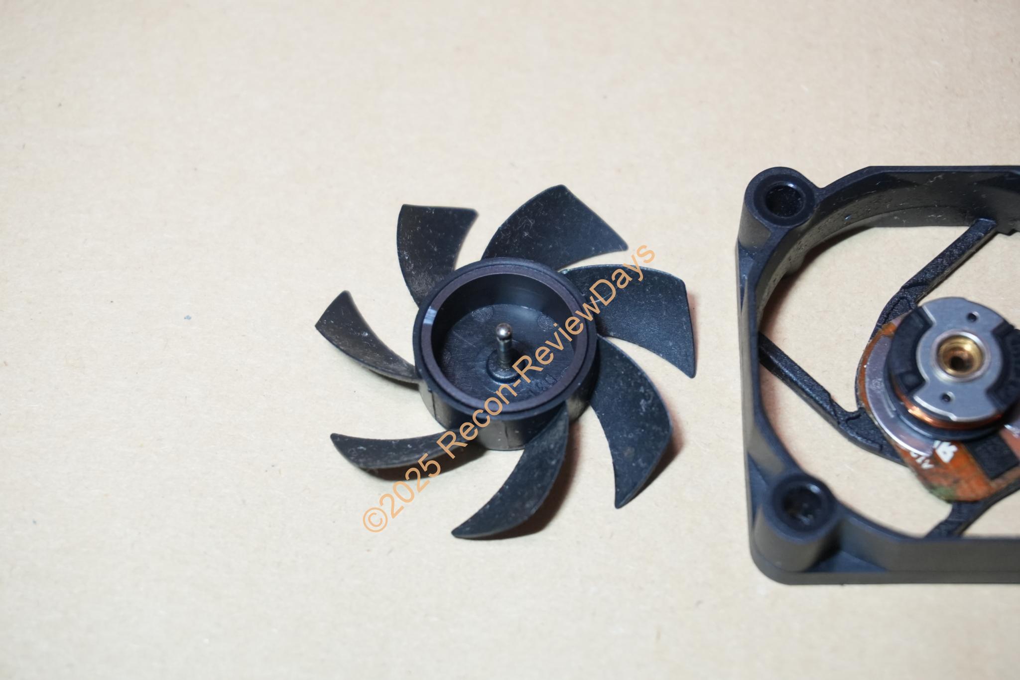 軸の部分を引っ張ってみると、思いのほか簡単にファンと軸の部分を取り外せたのでグリスを塗りなおせば復活しそうな気がします。