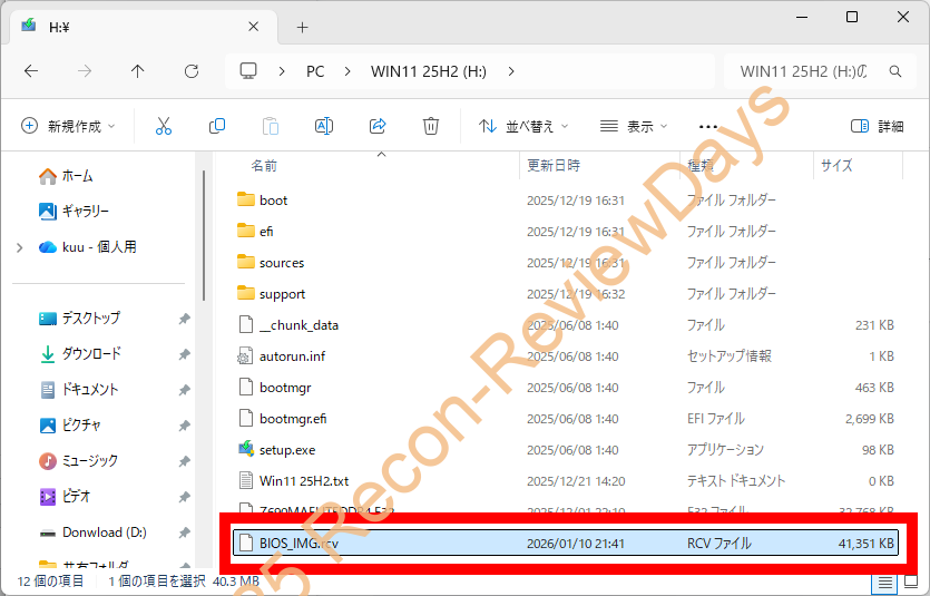 USBフラッシュメモリに「BIOS_IMG.rcv」を入れる