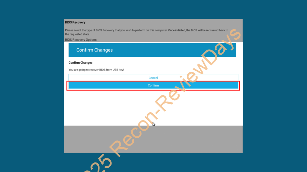 「BIOS Recovery」起動後「Load a BIOS from a USB Key」を押す