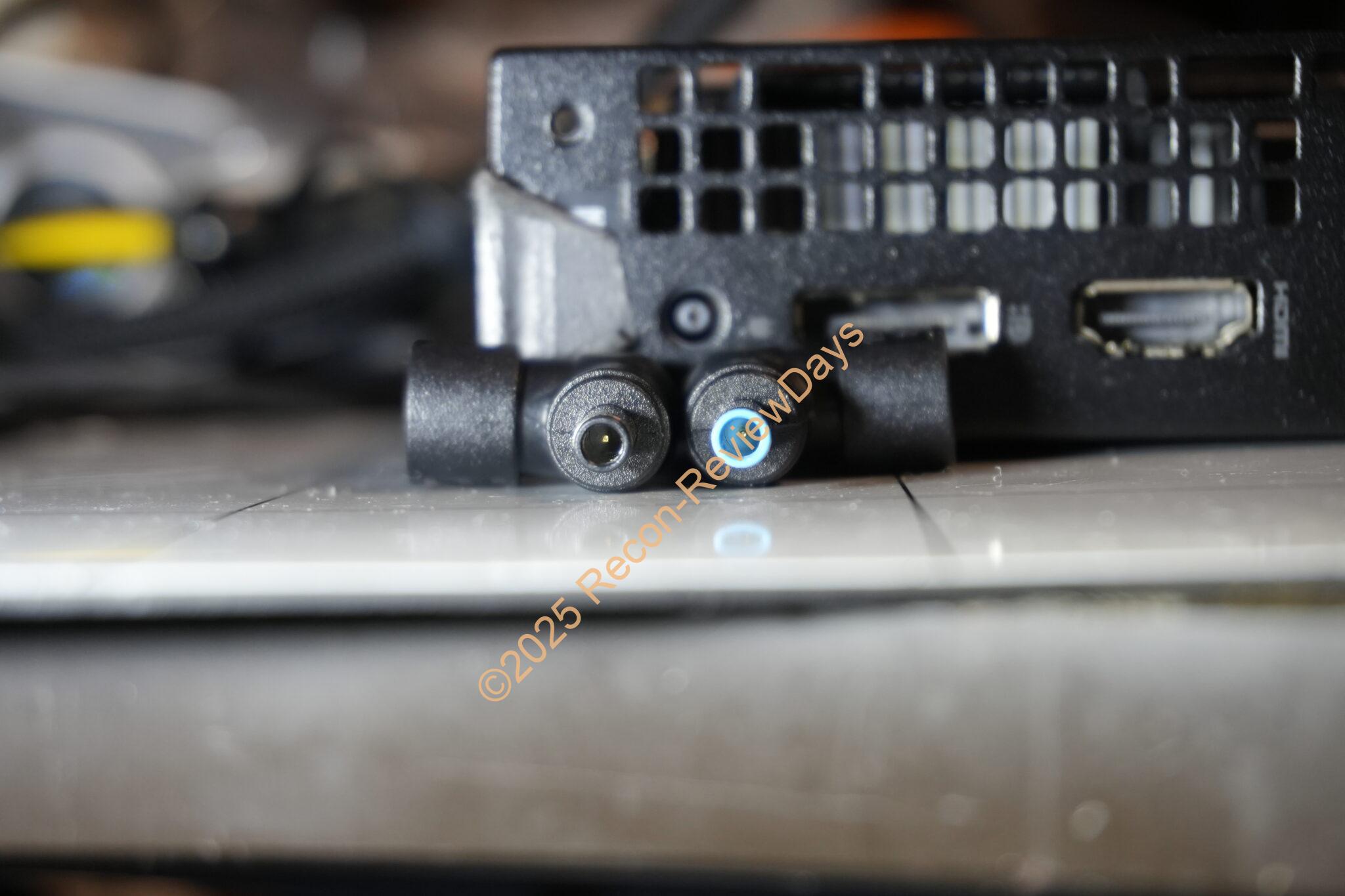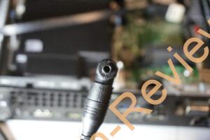 DCジャックの先端を交換できるタイプで、右側の水色のアダプタ(19.5V/M21)は挿さりも今一つだった(800MHz固定)ため改めてDCジャックの先端を探したところ、左側の黒色のDCジャック(19.5V/M22)の方が挿さりが良かったので、そちらで検証してみることに。