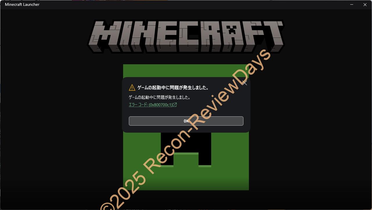 先日「Minecraft」を立ち上げた際に「Minecraft Launcher」が「ゲームの起動中に問題が発生しました。 エラーコード: 0x800700c1」と表示され、正常に起動出来なくなってしまいました。