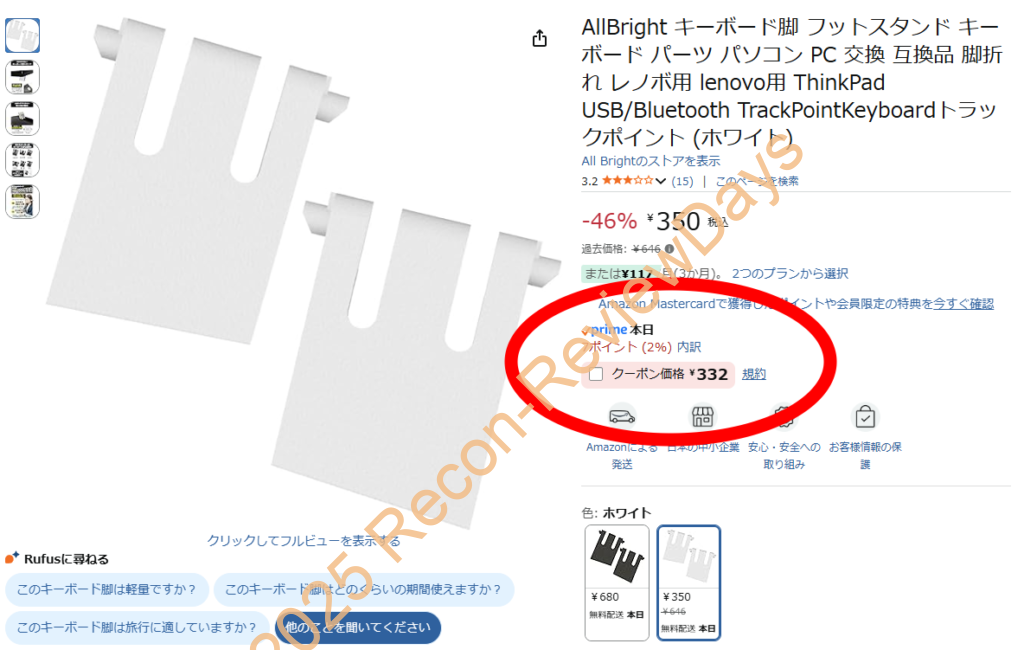 安いThinkPad TrackPoint Keyboard系用の脚を探している方にお勧め。