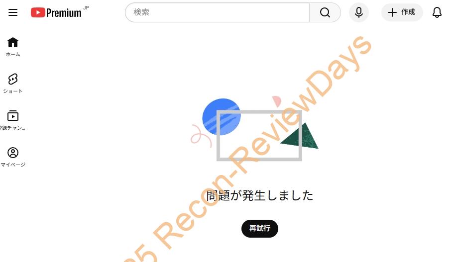 YouTubeのTOPページが障害により「問題が発生しました」と表示される #YouTube